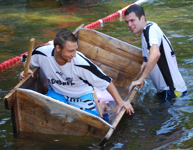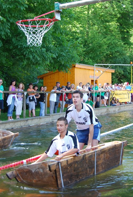 Und wirklich: Pottschach, mit Marcus Hecher und Rene Breitenecker als Startteam, kamen wirklich gut aus den Startlöchern. Trotz eines schweren Patzers von Marcus Hecher bei der zweiten Hürde (Rene Breiteneckers erster Kommentar: “Eh kloa, scho wieda a Hecha!”), dem Basketballkorb, traf man mit mehreren Längen Vorsprung bei der Sautrogübergabe ein. Bernhard Stix und Marvin Hauer erledigten den Rest mit Bravour. Sowohl beim Basketballkorb als auch bei der zweiten Hürde gaben sich Stixi und Marvin keine Blöße. Somit war der klare Sieg gegen die Tischlerei Madler Realität.