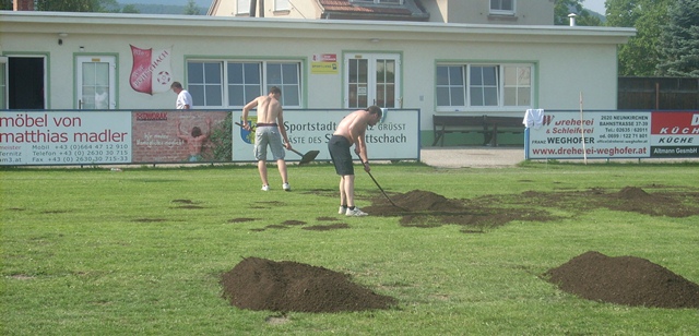 Dienstag, 12. Juni bis Donnerstag, 21. Juni: Neun Tage lang dauerten die Arbeiten auf der Pottschacher Sportanlage. Die Schwerpunkte: Neuer Zaun und neuer Rasen. Nebenbei wurde auch der bestehende Zaun (entlang der Austraße) neu gestrichen. Neun Tage harter Arbeit, in der die zahlreichen freiwilligen Helfer großartige Arbeit leisteten und unermüdlich an der Sanierung der Sportanlage arbeiteten. Nun, nach Beendigung der Arbeiten, kann sich das Ergebnis sehen lassen. Und es ist Zeit, sich bei den helfenden Händen zu bedanken.