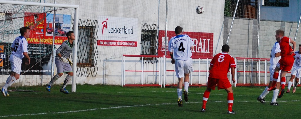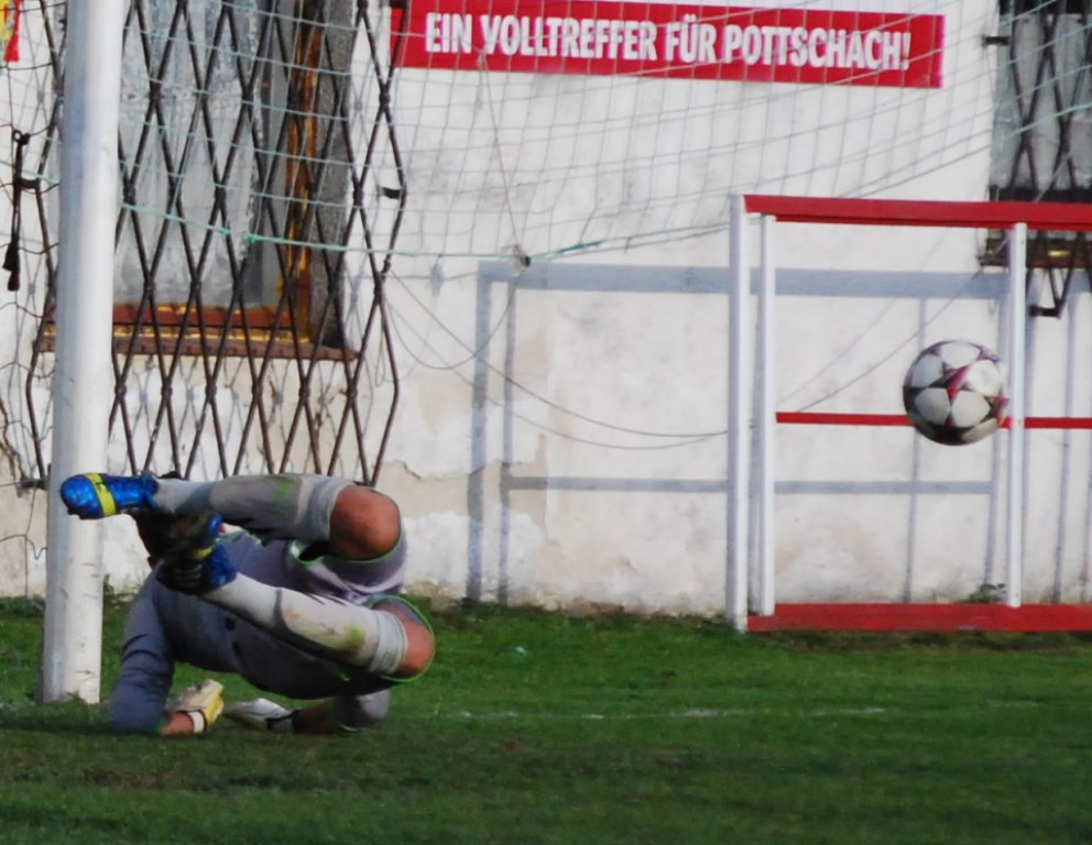 Die zweite Hälfte sollte Besserung bringen: In der 51. Minute auch die erste annehmbare Chance für die Pottschacher. Hereingabe Daniel Pichler, Philipp Stögerer kam zu spät um zu vollenden. Das war´s dann aber wieder: Der Charakter des Spiels blieb der gleiche: Erlach ließ sich nicht rauslocken und spielte die Zeit herunter. Pottschach zwar ein wenig drückender, aber noch immer weit entfernt von richtig drückend. Erst in der Schlussphase tat sich wieder mehr. Der SVSF riskierte nun. In der 83. Minute wäre Harry Bock fast am Fünfer zum Schuss gekommen, Pressball, Chance vertan. Dann die fünfminütige Nachspielzeit! Minute 95: Ein Lochpass auf Zoki Radulovic, der wird im Strafraum zu Fall gebracht. Klarer Elfer, nichts daran zu rütteln. Der Gefoulte trat selbst an…, und scheiterte an Erlach-Goalie Lechner. In der folgenden Aktion kam auch noch Daniel Kleinander zum Kopfball, Lechner aber auch hier mit einer starken Parade. Dann Schluss!
