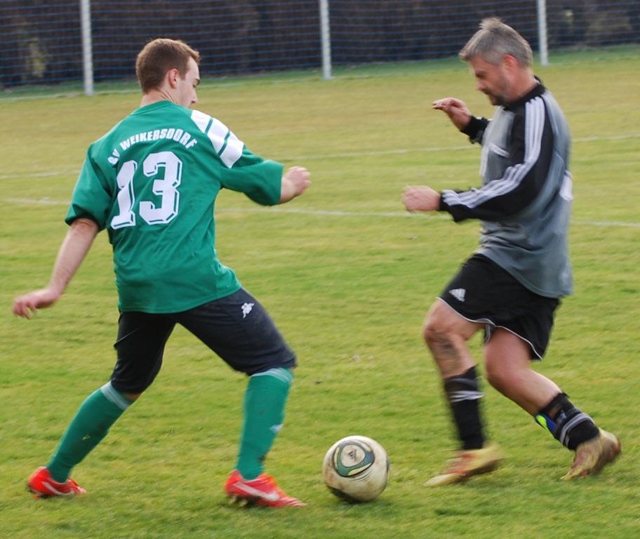 In der ersten Viertelstunde konnte der SVSF die Partie offenhalten, langsam aber sicher übernahm Weikersdorf das Kommando. In Minute 28 hätte es nach einem Zweikampf zwischen Harry Bock und Neumann Elfmeter geben können, in der 36. Minute fiel dann aber das sich abzeichnende 1:1.