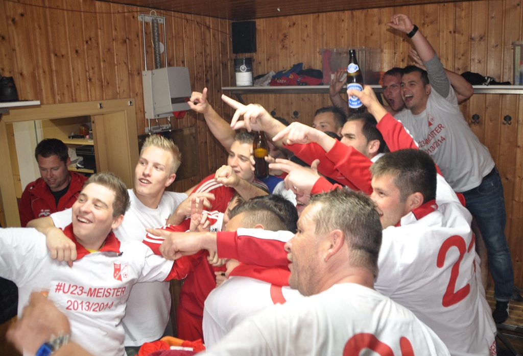 Nach dem Schlusspfiff war Party angesagt: Die U23 feierte den Meistertitel in der 2. Klasse Wechsel-Reservemeisterschaft standesgemäß, nämlich mit einer Riesenparty! Bereits während des KM-Spiels ging die Party los, zu Redaktionsschluss war das Ende der Feier noch nicht bekannt. Günter Benisek hat die besten Fotos…