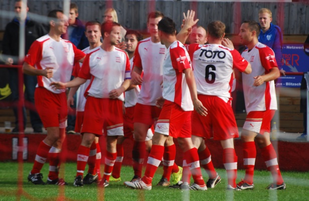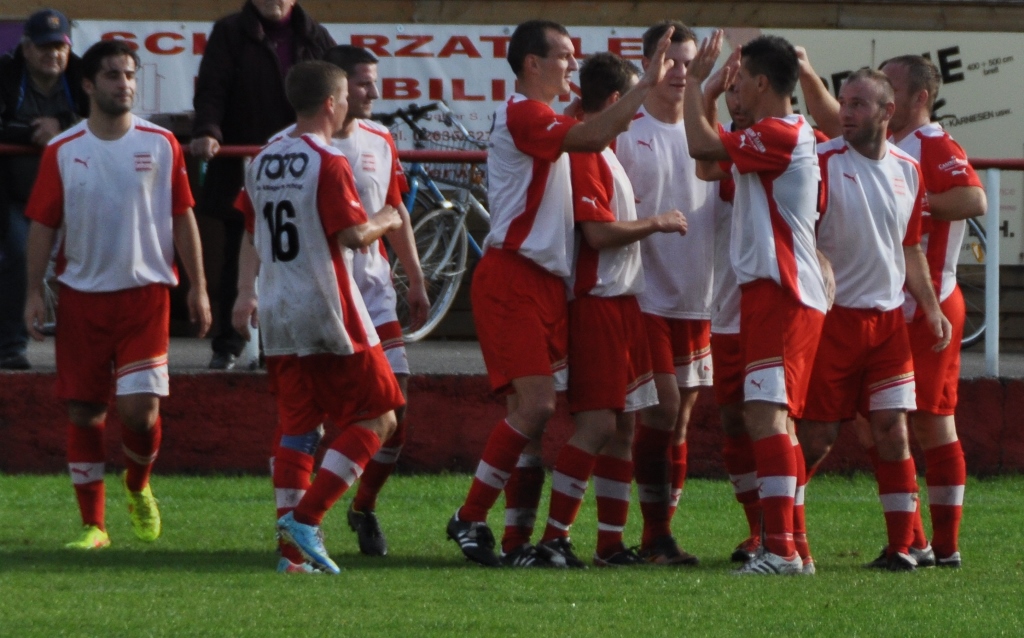 1:0 (22.): Eckball Slobodan Mazic, der hochgewachsene Kapitän Martin Dorner springt am höchsten und wuchtet den Kopfball unter die Latte.