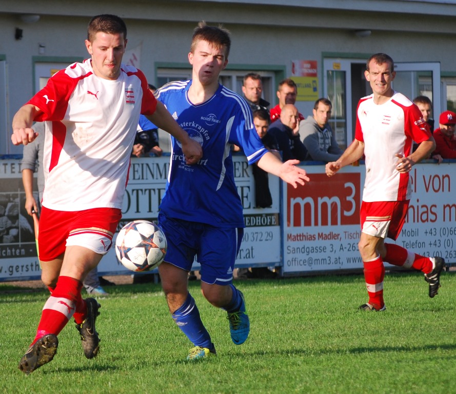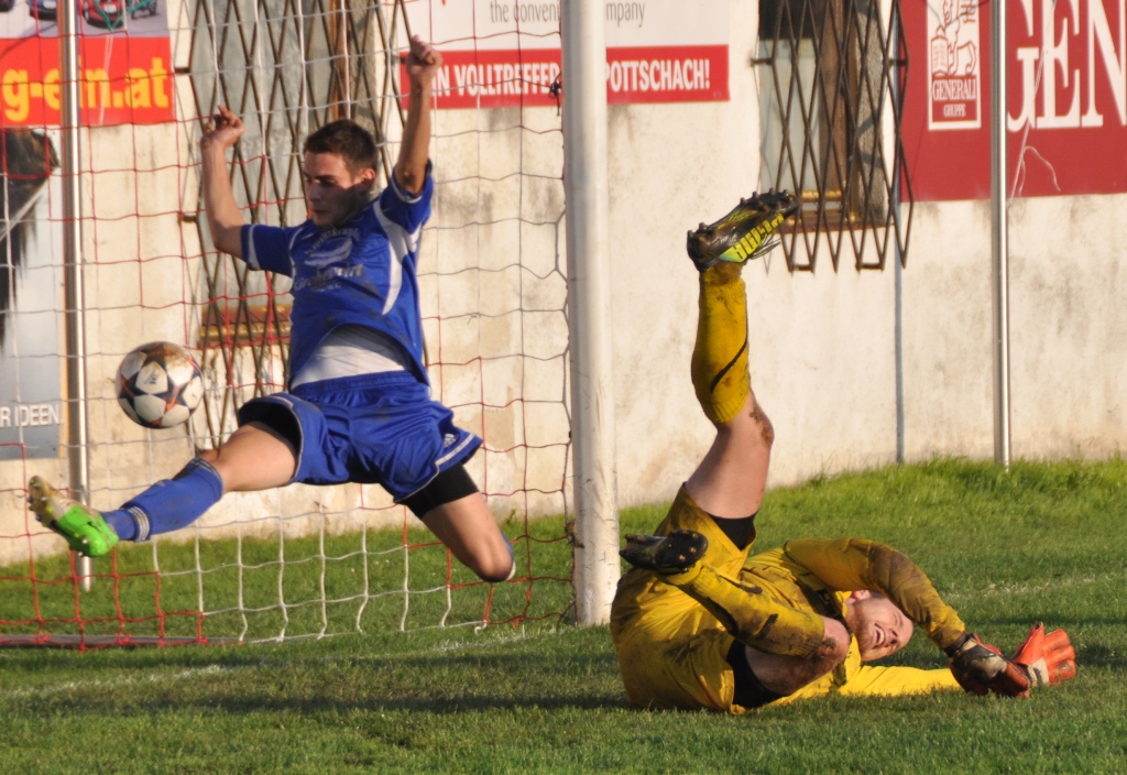 Dass während der gesamten 90 Minuten kein Regentropfen zu Boden ging, war schon unerwartet. Dass nach Wiederbeginn aber auch noch die Sonne hervorkam, sorgte für Erstaunen. Pottschach setzte dort fort, wo man zuvor aufgehört hatte. Leider aber schlich sich ein gewisser Schlendrian ein, zwei drei schöne Kombinationen wurden in den ersten Minuten nach Seitenwechsel nicht konsequent zu Ende gespielt. So war es nicht verwunderlich, dass auch der Gast wieder gefährlich wurde. Liebezeit zog aus zehn Metern ab, Dominik Peinsipp zauberte eine Fußabwehr hervor, dann konnte die SVSF-Abwehr in höchster Not klären (56.). Es war eine Warnung für den SVSF, denn die nächste Chance brachte das dritte Tor.