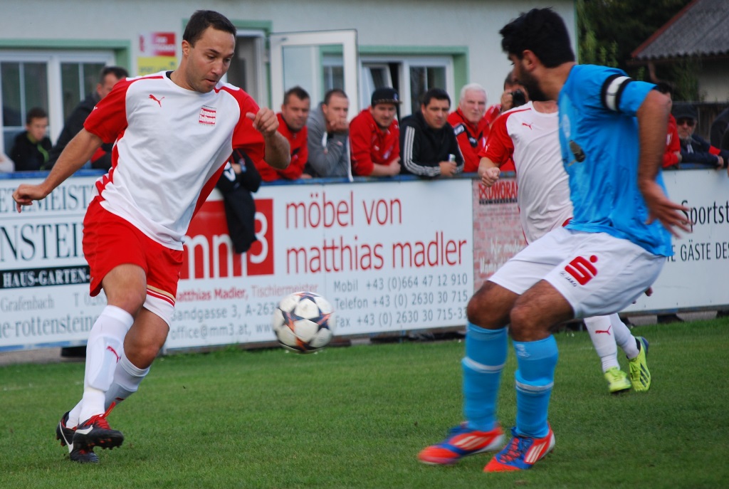 1:0 (40.): Nach einem Outeinwurf dreht Zoki Radulovic seinen Gegenspieler an der Cornerlinie ein und schickt dann den Stanglpass zur Mitte, wo Slobodan Mazic am langen Eck anrauscht und alleinstehend zur Führung verwertet.