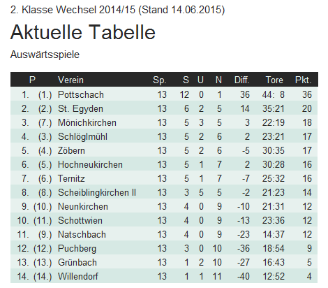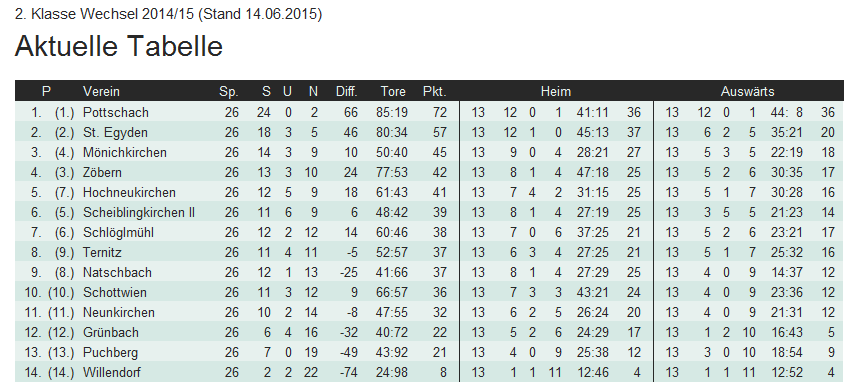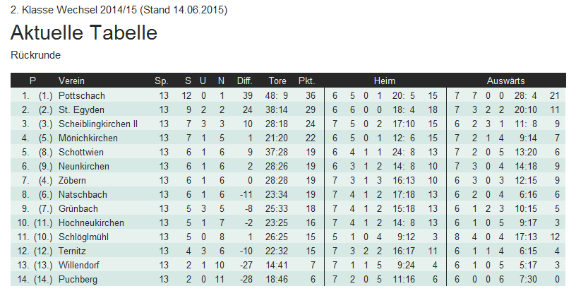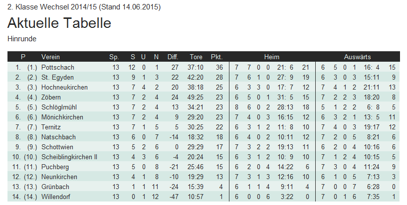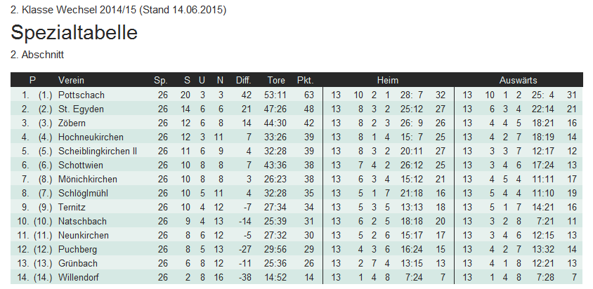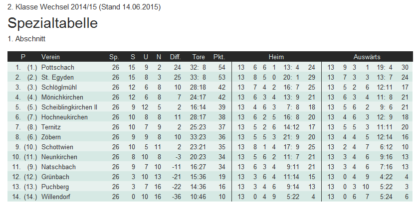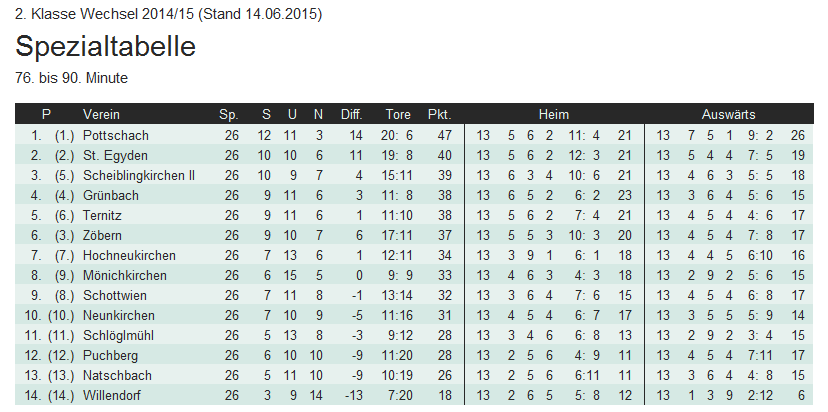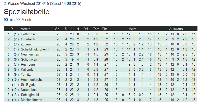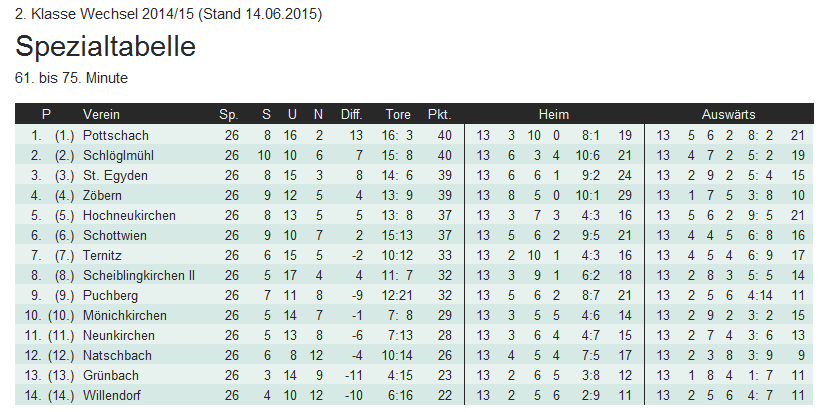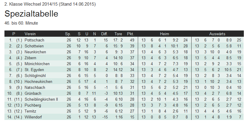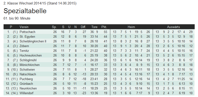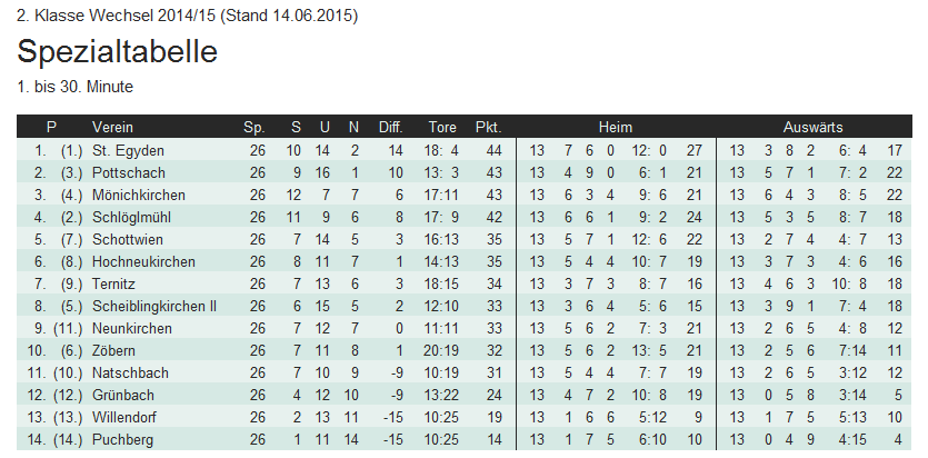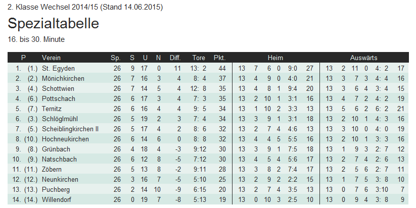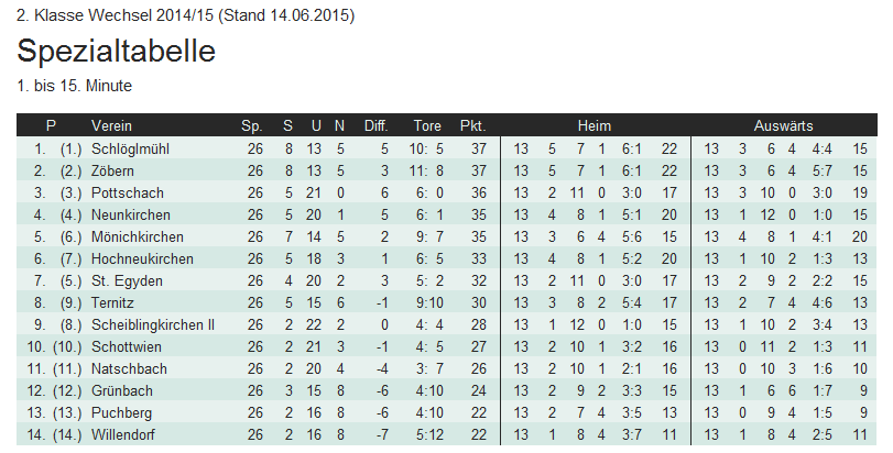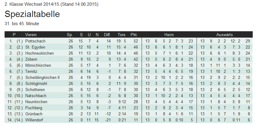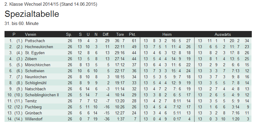 Alle Tabellen der Saison: Hinrunde, Rückrunde, Heimtabelle, Auswärtstabelle, Halbzeittabellen, Viertelstundentabellen, Halbstundentabellen!