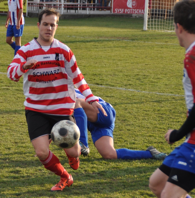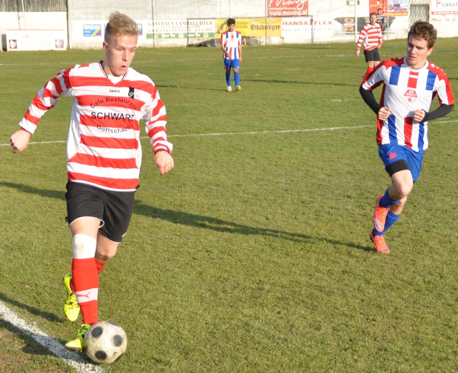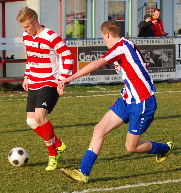 Mit zwei guten Gelegenheiten in den ersten fünf Minuten ließ sich das Spiel gut an. Zuerst rettete der Gästegoalie bei einem Stanglpass von Slobo Mazic (3.), dann köpfte Michi Huber nach Flanke von Slobo Mazic knapp am Kreuzeck vorbei (5.). Eine weitere Viertelstunde lang wehrten sich die Ternitzer gut gegen die anstürmenden Pottschacher, in der 22. Minute sollte der SVSF dann aber in Führung gehen.