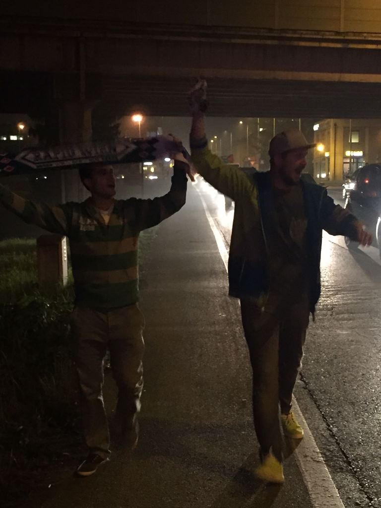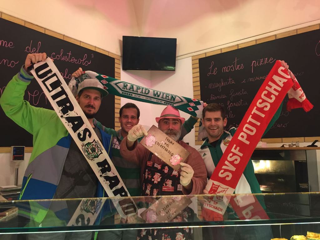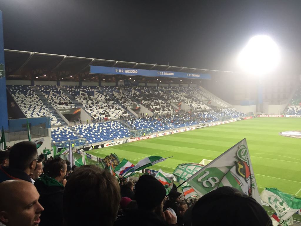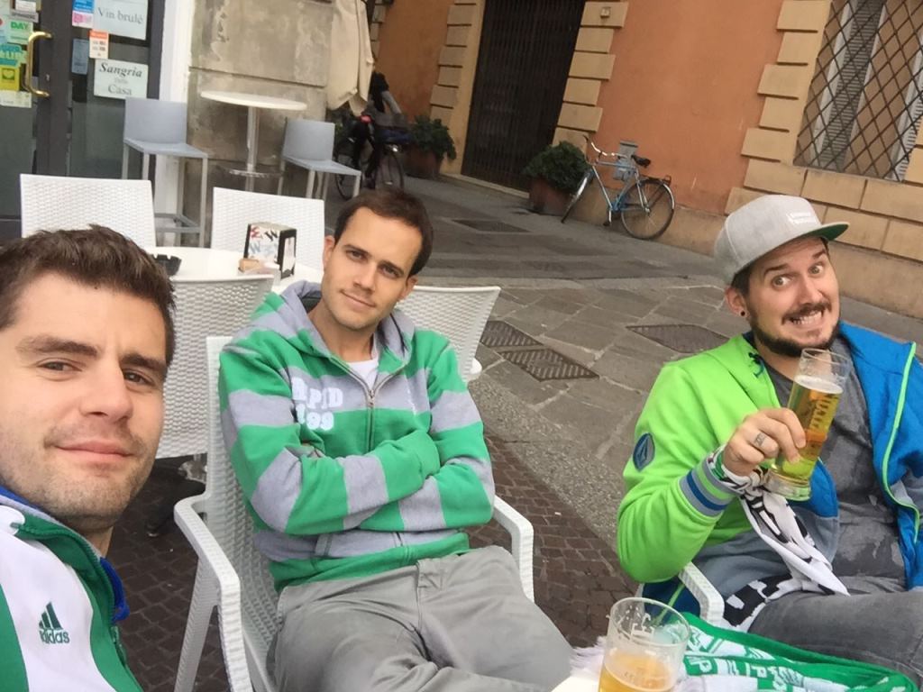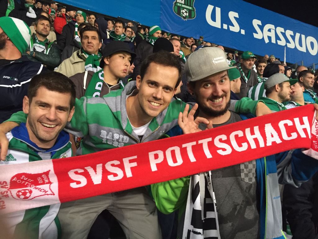 “Wenn Engel reisen, …” Nein, vergesst es. Die Grünen gastierten in der Europaleague bei Sassuolo, auch drei SVSF-ler machten die Reise nach Reggio Emilia mit. Messi Lechner, Bernhard Stix und Oliver Membier nahmen die Strapazen auf sich, um ihre Mannschaft zu unterstützen. Mit Erfolg, denn mit zwei späten Toren fühlte sich das 2:2 danach wie ein Sieg an. Danke für die Erinnerungsfotos…