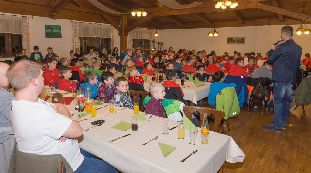 Der Nachwuchs des SVSF Pottschach feierte am Freitag Abend Weihnachten im GH Schrammelteich. Obmann Filip Blazanovic machte in seiner Rede auf die starken Leistungen der Jungkicker aufmerksam. Höhepunkt war natürlich die Geschenkeübergabe. Die Nachwuchsspieler und Trainer durften sich über lässige Erima-Trainingsleiberl freuen. Bedanken dürfen wir uns dabei bei der Fa. Akustik Wolf (Hubert Wolf, Michael Buchegger) sowie bei der Fa. Semperit aus Wimpassing (Markus Stocker). Auch das eine oder andere weitere Geschenk sorgte für Freude, so bekam zum Beispiel die U12/1 von Bettina und Günter Goak wunderschöne Armbanduhren geschenkt. U16-Coach Jürgen Goger durfte sich zu seinem anstehenden Halbrunden über eine Urkunde und einen Gutschein freuen…