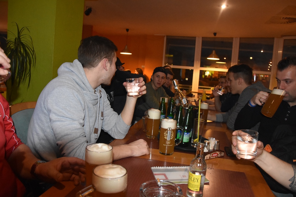 Neun Jahre lang war der SVSF Pottschach nicht mehr in Tschechien gewesen. Samstag und Sonntag war es wieder soweit: Für die Pottschacher Kicker sollte ein fabelhafter Teamausflug werden, auch wenn man sportlich eine Lektion von bärenstarken Gegnern erhielt. Dafür war alles andere top organisiert von unserem Legionär Filip Hrubos: Nach der Fahrt mit dem ÖFB-Cupfinalbus um ca. 12.15 Uhr in Uhersky Brod angekommen, lotste uns Hrubos zuerst zur Jugendherberge “Domov Mladeze”, dann ging´s sofort ab ins Stadion Lapac, wo das Testspiel gegen den CSK Uhersky Brod am Plan stand. Toller Kunstrasen, die größte Umkleidekabine, in der der SVSF sich jemals umzog. Dazu nach dem Spiel ein luxuriöser Wellnessbereich, der keine Wünsche offen ließen. Auch das Abendessen, zu dem es Gulasch, eine Stelze sowie eine kalte Platte gab, mundete. Nicht vergessen darf man das wohl schmeckende tschechische Bier, das am Abend dann stetiger Begleiter war. Bis Mitternacht saß man in einem Pub in der Stadt zusammen, zu Mitternacht ging´s dann ins “Elektra”, eine Disko außerhalb der Stadt. Dort tanzte und feierte man bis in die frühen Morgenstunden. Pünktlich am Sonntag um 9.00 Uhr zum Frühstück waren wieder alle fit. Danach folgte die Heimreise. Ein Dank gilt Filip Hrubos, der die Organisation vor Ort übernahm und wirklich alles richtig machte. Ein Dank aber auch an die gesamte Delegation für die vorbildliche Disziplin, mannschaftlich sollte uns dieser Trip auf jeden Fall weitergebracht haben. Morgen Montag wird dann wieder ernsthaft an der Form gefeilt…