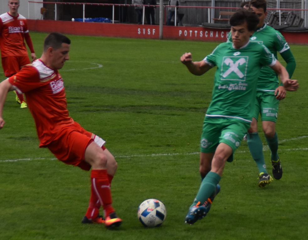 Von Beginn an entwickelte sich eine offene Partie, Pottschach in der Anfangsphase mit einem guten Freistoß von Daniel Kleinander und einem guten Schuss von Meni Marku. Auf der Gegenseite verhinderte Dominik Peinsipp bei einem Kopfball das 0:1. Dann die 33. Minute: Ein weiter Ball, der Rettungsversuch von Marvin Wellisch misslingt. Am Ende schob Szabo den Ball ins leere Tor. Mist!