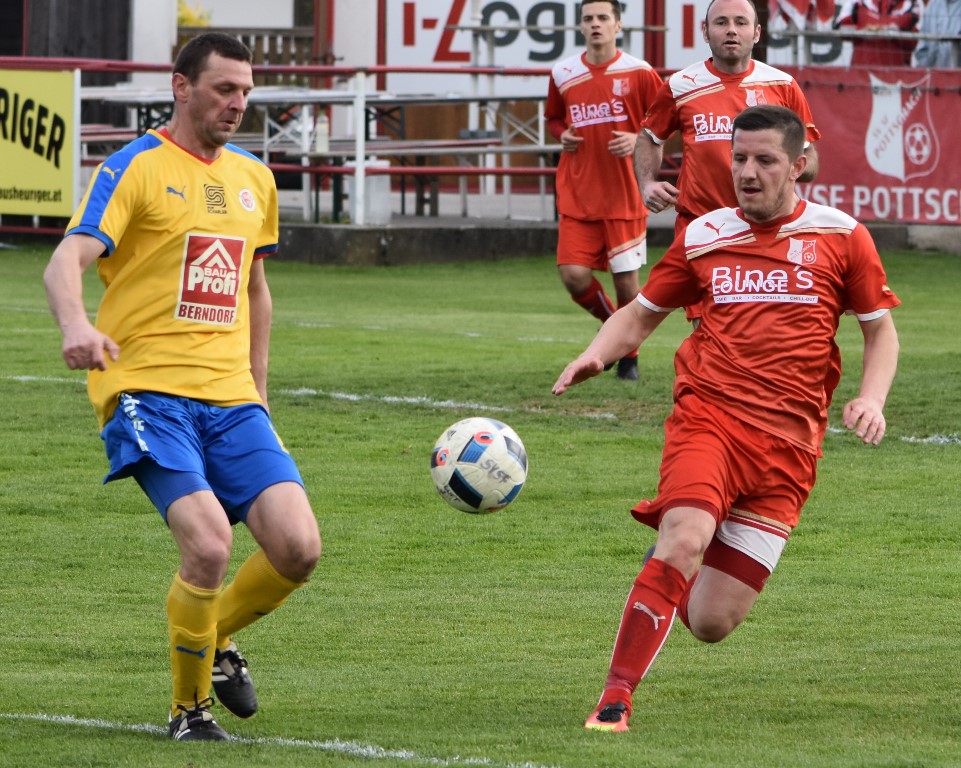 Neo-Coach Manuel Mannsfeldner nahm ein paar Änderungen vor, so feierte Peter Fahrner jun. sein Comeback, dazu legte “Mannsi” das taktische Konzept deutlich defensiver an. Einiges neu, kein Wunder, dass die Pottschacher in den ersten zehn Minuten ziemliche Schwierigkeiten hatten. Weissenbach drückte in der Anfangsphase gleich ordentlich auf´s Gas, ein paar brenzlige Situationen musste der SVSF überstehen. So nach einer Viertelstunde konnte den Gästen der erste Schwung rausgenommen werden. Pottschach bekam langsam Sicherheit, nach vorne gab´s aber kaum Entlastung, dadurch sollte Weissenbach auf ungefähr 70 Prozent Ballbesitz kommen. Erst im Finish der ersten Hälfte geriet die Mannsfeldner-Elf wieder unter Druck, Goalie Dominik Peinsipp hielt sein Tor aber rein.