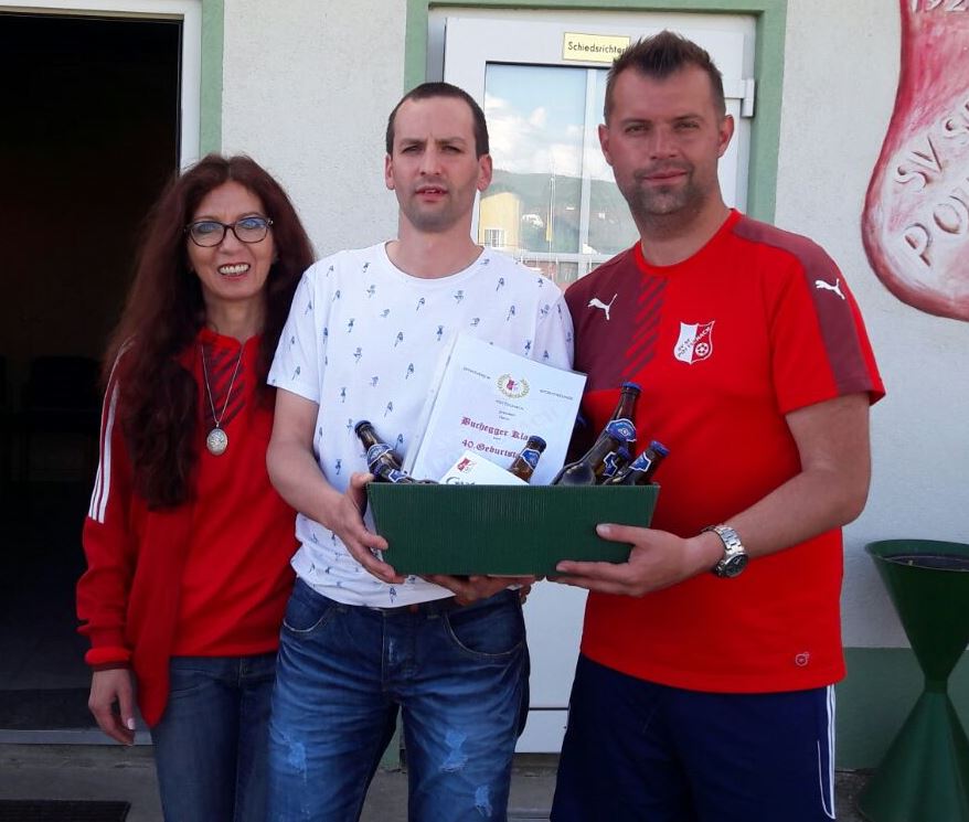 Klaus Buchegger, legendärer Kapitän des SVSF, feiert in Kürze seinen 40er. Vor dem Heimspiel gegen Pitten stellte sich der Jubilar nicht nur mit zwei Kisten Bier für KM/U23, sondern auch mit einem Matchball für das Heimspiel ein. Viel Glück hat der Ball zwar nicht gebracht, dennoch wünschen wir Klaus alles Gute zum Geburtstag und vor allem Gesundheit…