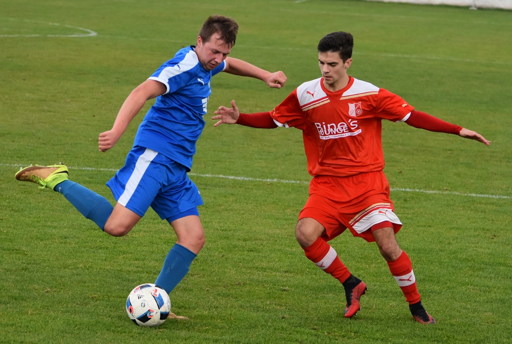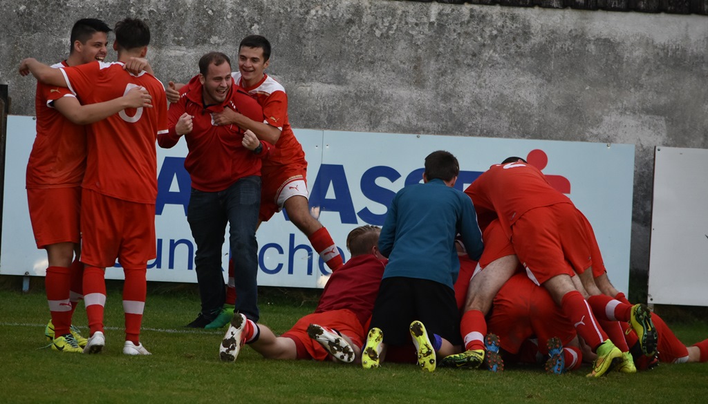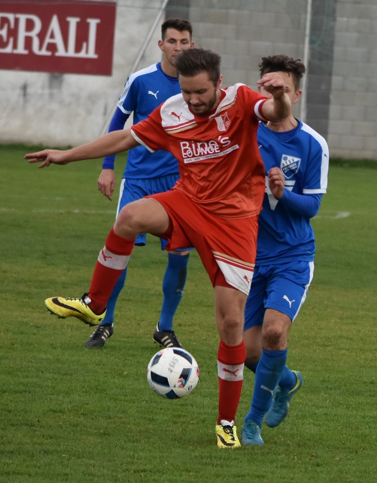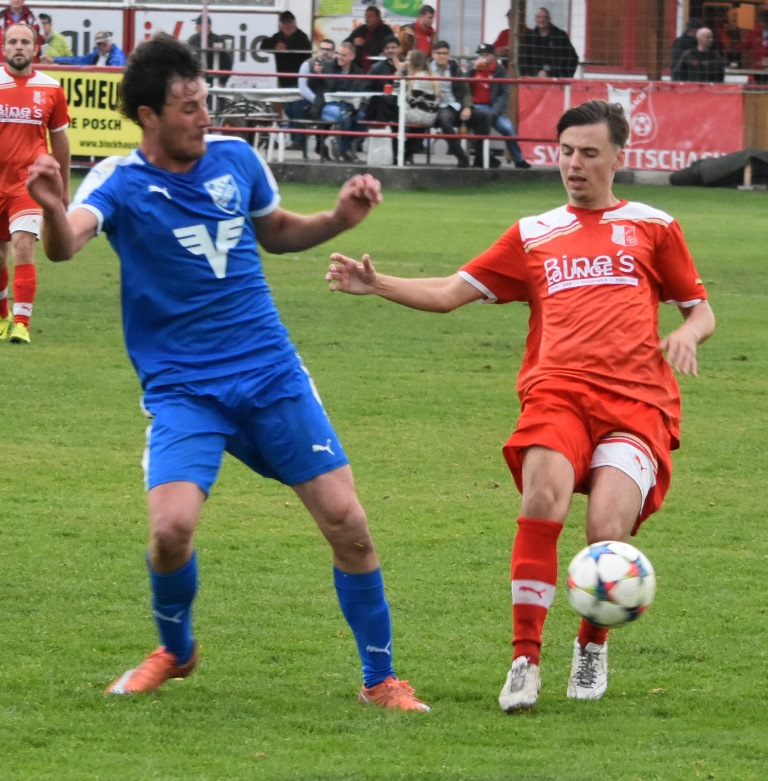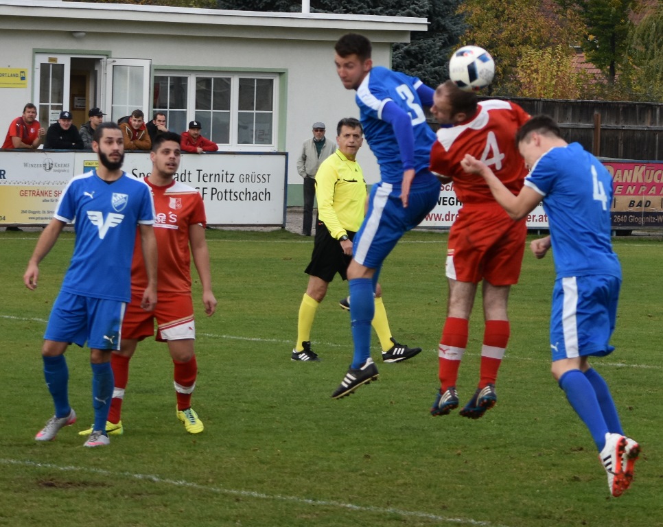 Die erste Hälfte war wirklich sehr schön anzusehen: Beide Teams stiegen auf´s Gas, überbrückten schnell das Mittelfeld und schlugen ein hohes Tempo an. Bis kurz vor der Pause trafen beide Mannschaften jeweils einmal den Pfosten. Zuerst Kalusa mit einem Weitschuss-Hammer aus 25 Metern an die Querlatte (20.), fünf Minuten später knallte ein Volley von Szabolcs Fekete an die Stange. Ansonsten vergaben P. Schwarz (5.) und Ostermann (32.) auf Seiten der Puchberger, Pottschach scheiterte bei Gelegenheiten von Philipp Egger (11.), Kevin Senft (22.) und Gerhard Egger (30.). Im Finish der ersten Hälfte durfte man auf keinen Fall kurz mal wegsehen: Zuerst war es Philipp Egger, der von der Strafraumgrenze abzog. Der Ball passte genau ins kurze Eck. Und der Tor-Jingle aus dem Lautsprecher war noch gar nicht verstummt, da gaben die Gäste gleich mit dem Anstoß weg die schnelle Antwort. Am Ende jubelten M. Schwarz und die mitgereisten Anhänger über den 1:1-Ausgleich. Pottschach verdutzt, die Uhren also wieder auf null gesetzt.