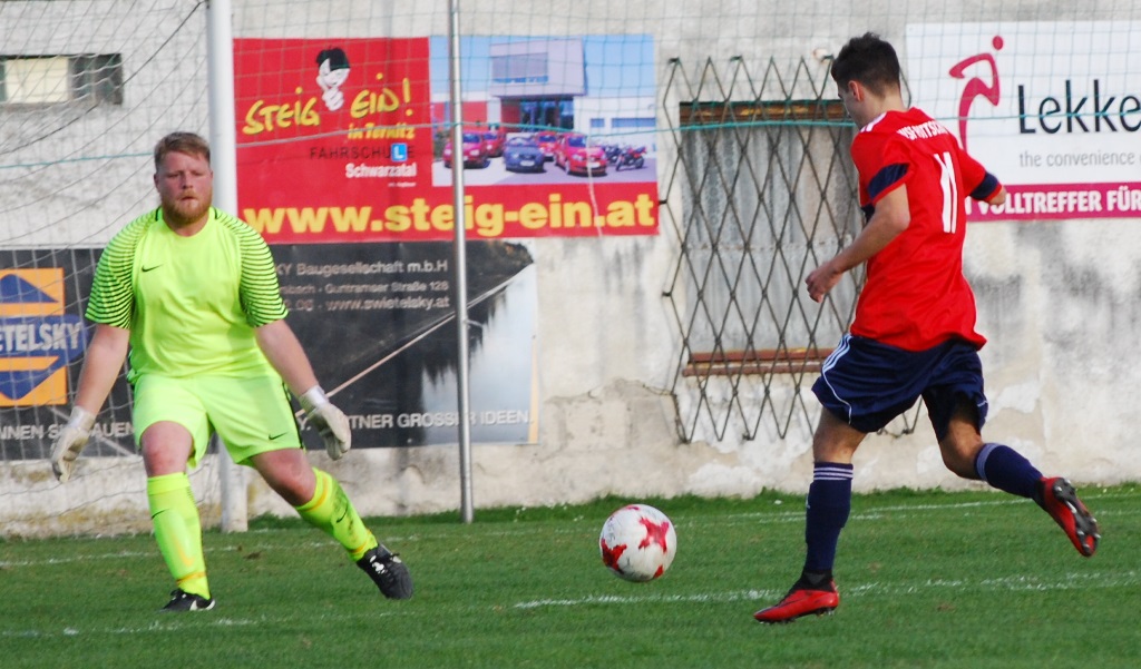 Alles offen zur Pause. Nach Wiederbeginn dauerte es erneut zehn Minuten, bis das zweite Tor fiel. Martin Nyari schirmte zunächst den Ball am Sechzehner ab, legte dann quer auf Szabolcs Fekete. Der nahm sich den Ball mit und schoss dann zum 2:0 ein. Sein Premierentreffer für Pottschach! In der Folge plätscherte das Spiel dahin. Natschbach versuchte es mit untauglichen Mitteln, Pottschach spielte seine Aktionen nicht richtig zu Ende. Nach einer Topchance für die Gäste in der 77. Minute (David Puhr zeichnete sich gegen Ungerhofer aus, dann rettete Philipp Stögerer) stieg Pottschach wieder auf´s Gas. Nach einem Konter legte Philipp Egger mustergültig für Martin Nyari auf, der keine Mühe hatte, einzuschießen. Das 3:0 bedeutete auch den Endstand!
