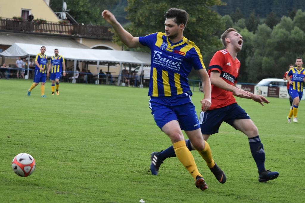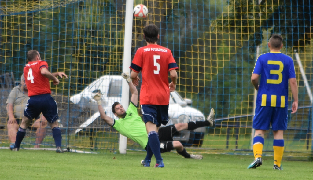 Besser hätte die Partie nicht beginnen können: Heimkeeper Lautschan konnte einen Ball nicht sichern, Philipp Stögerer spritzte dazwischen und wurde dann vom Goalie gelegt. Elfmeter: Der Gefoulte verwandelte sicher! Den nächsten Schlöglmühler Fehler bestrafte Pottschach mit dem 2:0. Bei einer Freistoßflanke von Szabolcs Fekete waren sich die Heimischen hinten uneinig. Gerhard Egger und ein Abwehrspieler kamen zum Presser, Nutznießer war Marvin Wellisch, der den Ball nur mehr ins leere Tor einschießen musste. Der SVSF in Hälfte eins das klar bessere Team. Schlöglmühl kam nur zu einer Chance, die aber war zwingend: Klaus Lechner rettete gegen Huber mit einer Glanzreaktion (35.). Besser machte es der SVSF, der in der 39. Minute zum dritten Tor kam. Eine weite Eckballflanke brachte Toni Bektesi zurück zur Mitte, wo Philipp Stögerer aus kurzer Distanz das Fußerl hinstellte. Kurz vor der Pause wäre Stögerer beinahe das 4:0 gelungen, Schlöglmühl rettete bei seinem Kopfball auf der Linie.