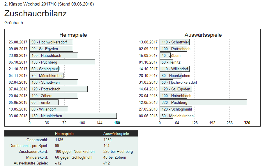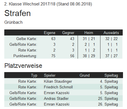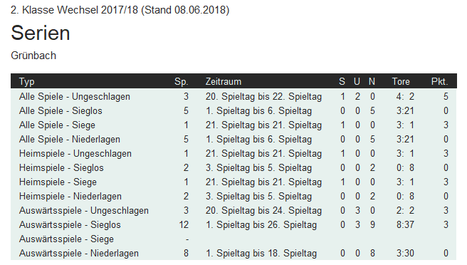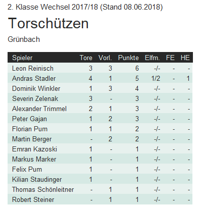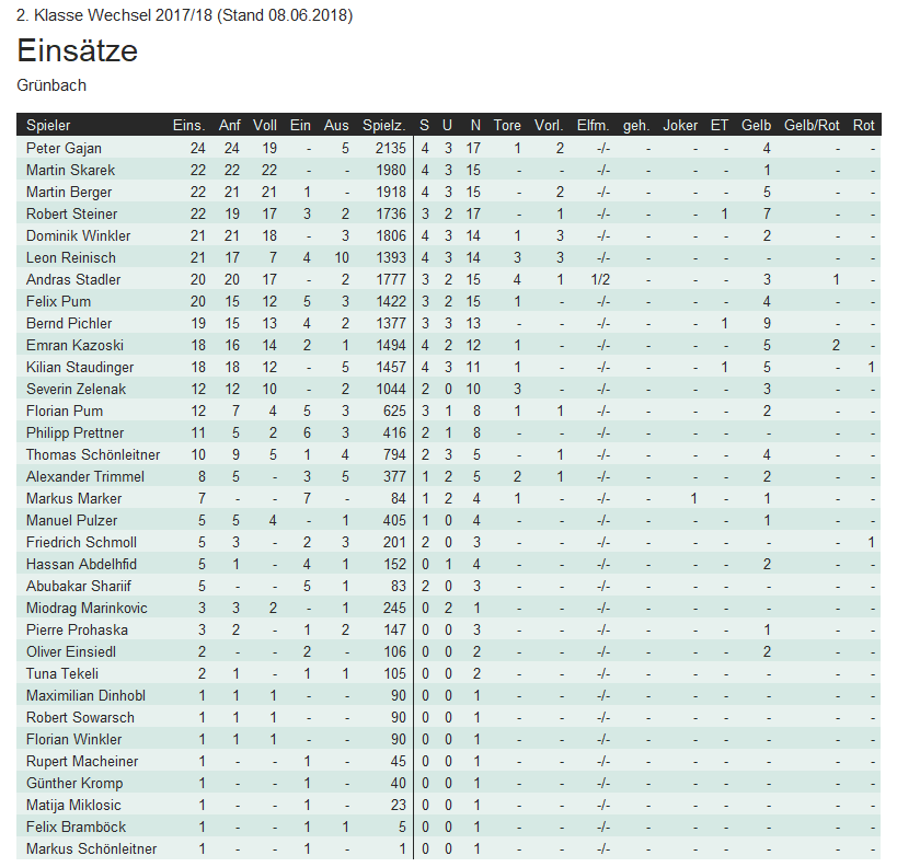 Nach dem schwachen Herbst gab es Veränderungen beim SV Grünbach. Der im Winter geholte Trainer Frischherz saß schon beim ersten Spiel nicht mehr auf der Bank, Thomas Schönleitner übernahm den Spielertrainer. Der Start in die Rückrunde verlief durchwachsen. Von den ersten fünf Spielen verlor Grünbach vier, in allen vier Partien gelang kein Treffer. Lediglich ein 2:0 daheim gegen Schottwien stand zu Buche. Doch bereits beim unglücklichen 0:1 daheim gegen Zöbern (das Tor fiel erst in der Schlussminute) zeigten man seine kämpferischen Qualitäten. Trotz der Niederlage begann eine starke Ergebnisphase. In Natschbach kam das verlorene Glücksengerl vom Zöbern-Match zurück, man blieb zwei weitere Partien ungeschlagen. Auch gegen Willendorf sah es eine Stunde lang sehr gut aus, ehe man nach 2:0-Führung noch mit 2:4 verlor. Einen Punkt (Hands-Elfer in der letzten Minute verwandelt) holte man noch in Schlöglmühl, zum Abschluss setzte es Niederlagen gegen Neunkirchen und Mönichkirchen. Mit nur 19 Toren in 24 Partien stellte der SVG die schlechtes Offensive. Auswärts blieb man bis auf drei Unentschieden ohne Erfolgserlebnis. Positiv: Grünbach stellte im Frühjahr wieder eine U23. Ein gutes Zeichen für einen zarten Aufwärtstrend.