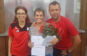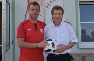Vor dem letzten Spiel gegen Mönich nutzten Obmann Filip Blazanovic und Kassierin Margit Leitenbauer die Gelegenheit, Herta...
